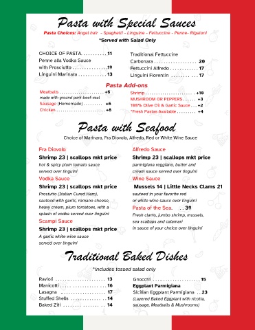 CHOICE OF PASTA. . . . . . . . . . . 11 Traditional Fettuccine